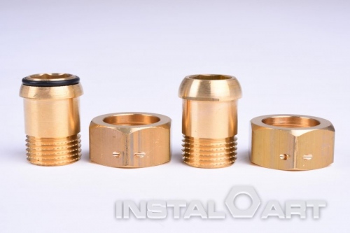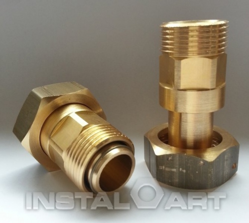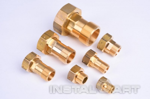 Półśrubunki mosiężne do przyłączania wodomierzy do sieci wodociągowej. Dostępne także w wersji z zaworkiem zwrotnym i z regulowaną długością (półśrubunki kompensacyjne), których rozmiar można wydłużać wedle potrzeb.