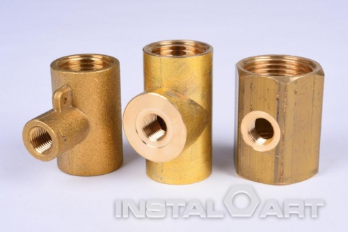 Trójniki mosiężne z trzema wylotami do tworzenia bocznych odgałęzień rurociągu w celu doprowadzenia wody w wyznaczone miejsca poboru. Można je stosować w instalacjach wodnych gdzie ciśnienie robocze wynosi maks. 10 bar, a temperatura obecnego w nich czynnika nie przekracza 95°C.