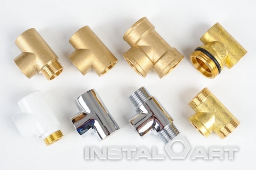 Trójniki mosiężne zwykłe występują w szerokim zakresie średnic (od 3/8 do 6/4 cala) i kilku kombinacjach gwintów zewnętrznych i wewnętrznych. Natomiast trójniki do czujnika temperatury mają tylko gwinty wewnętrzne przyłączeniowe w rozmiarze 1/2 i 3/4 cala.