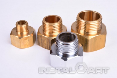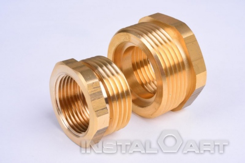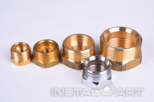 Redukcje mosiężne do zmniejszania średnicy rur w celu wyprowadzenia przyłącza. Przeznaczone także do przyłączenia do sieci wymaganych urządzeń, głównie wodomierzy i ciśnieniomierzy. Umożliwiają szczelne łączenie elementów przy minimalnym nakładzie pracy i jednoczesnej oszczędności czasu. Zapewniają trwałe, odporne na uszkodzenia mechaniczne połączenia, co gwarantuje bezawaryjne, niczym niezakłócone działanie instalacji.